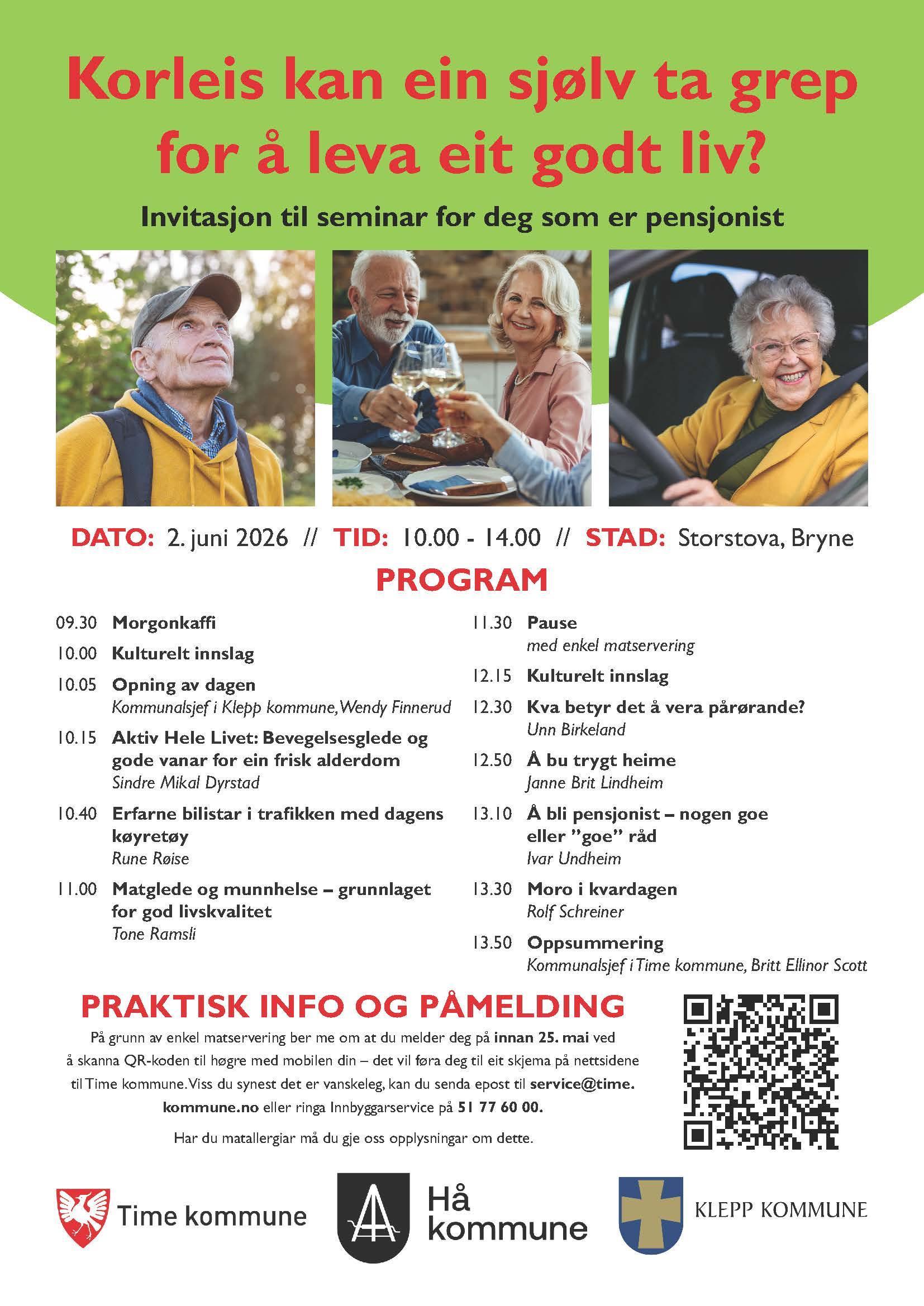 Korleis kan ein sjølv ta grep for å leva eit godt liv? Invitasjon til seminar for deg som er pensjonist.