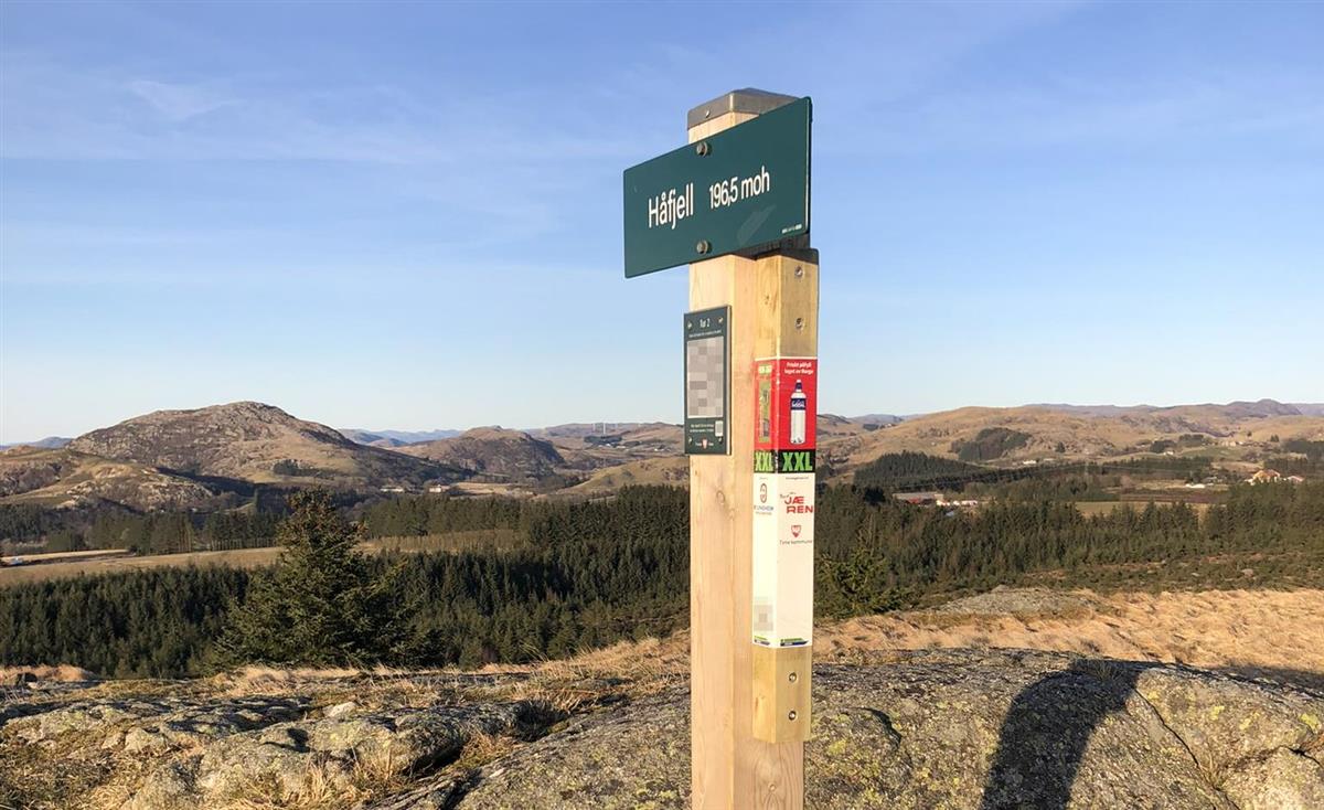 Stolpe nummer 63, Håfjell. Denne stolpen finn du på kartet "Ti turar i Time".