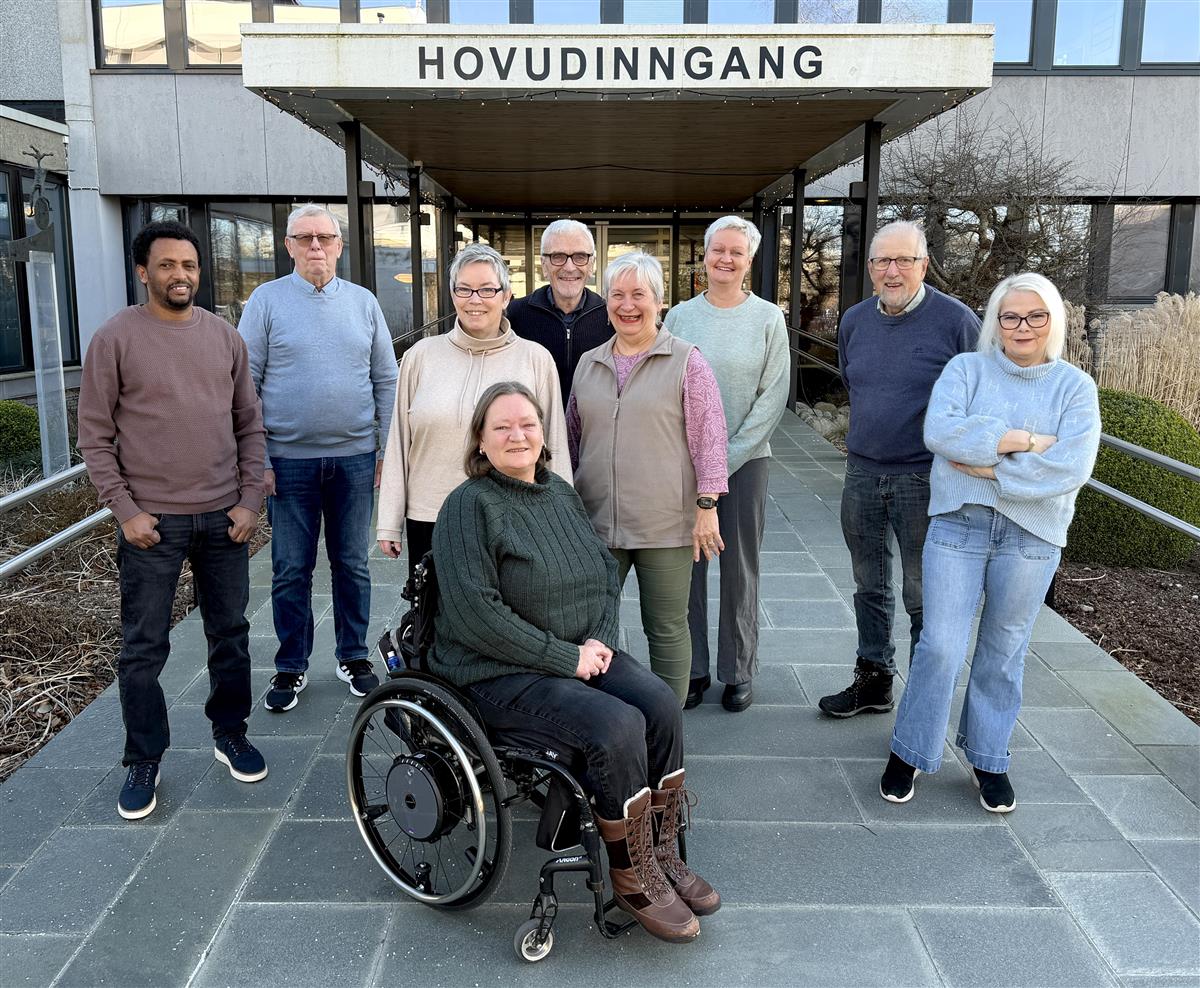 Senior- og brukarrådet 2023-2027. Frå venstre bak: Bitsuamlak Habte Mehari, Kjell Sund, Åse Corneliussen, Oddmund Gravdal, Astrid Holen, Ranveig Undheim, Kjell Olav Stangeland og Aud Berit Torvund. Foran: Sissel Løchen.