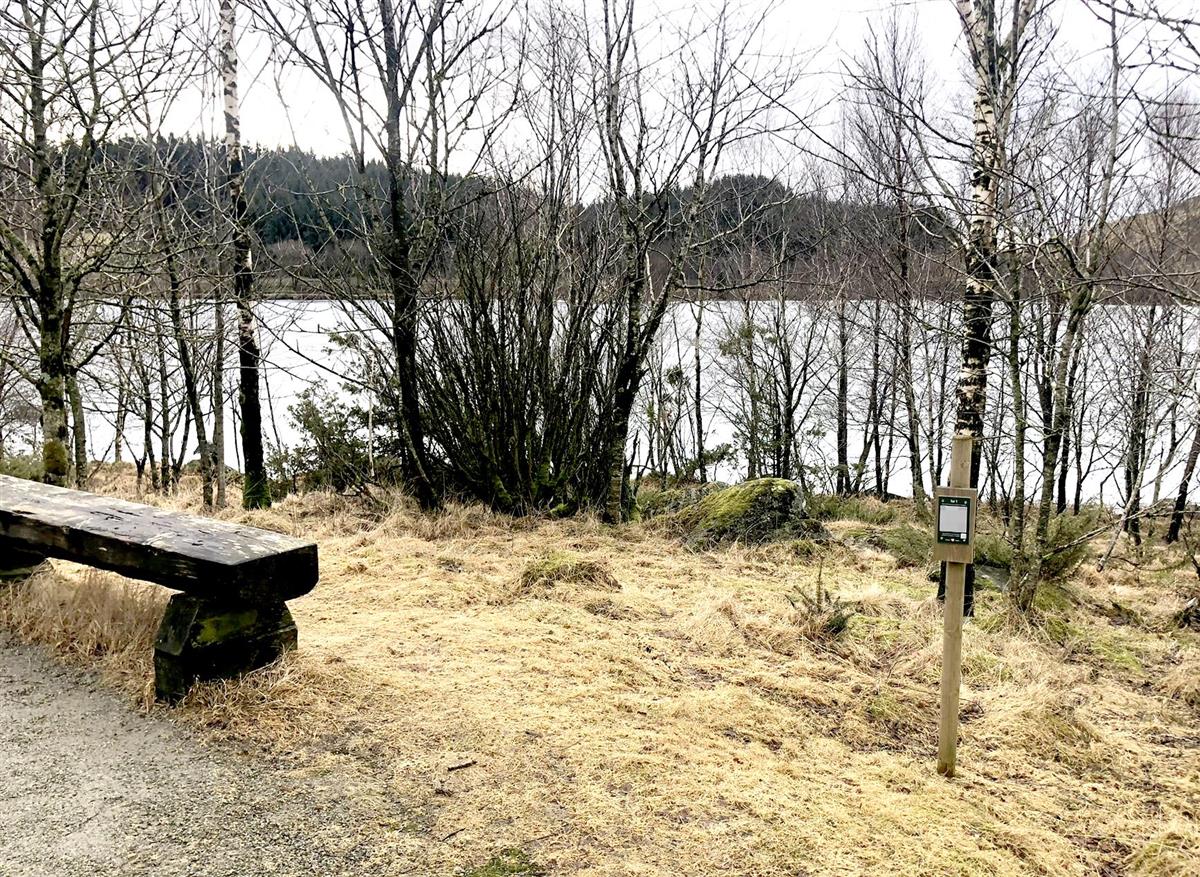 QR-koden for registrering av turen er plassert ved denne benken.