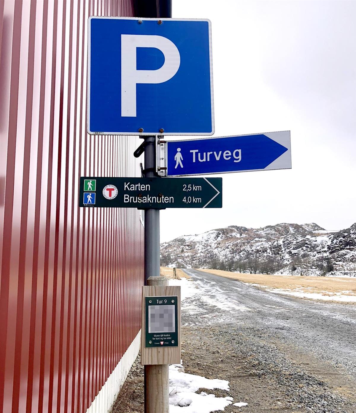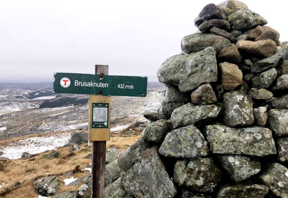 QR-koden for registrering av turen finn du på skiltstolpen på Brusaknuten.